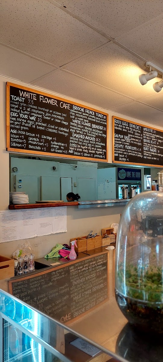 The menu at White Flower Cafe offers a selection of foods and beverages suited for breakfast, light meals, and casual coffee breaks. Visitors can expect a variety of coffee options alongside a range of savory and sweet dishes.